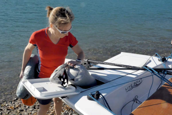 Loď jsme měli možnost otestovat během prosincového setkání distributorů a během pár přeplaveb jezera Lac du Bourghet jsme věděli, že rozhodně má co nabídnout i českým zájemcům. Při délce lodi 5 metrů činí její hmotnost pouhých 100 kg neboť je, stejně jako ostatní modely Liteboat, vyráběna vakuovou infúzí a její kompozit sestává z kombinace skelných a karbonových vláken. Dalším plusem je její snadné a velmi rychlé sestavení, kdy loď při připravena pro plavbu během cca 10 minut a vše zvládne být operováno jen v jedné osobě! K přípravě ani provozu lodi tedy nejsou potřeba žádné další ruce a loď je z kombinovaného přívěsu s integrovaným, ručním spouštěcím vozíkem, možné spustit na vodu na libovolné pláži s pozvolným klesáním dna! Kýl, stejně jako kormidlo je spouštění, ponor lodi tudíž činí pouhých 20 cm, respektive 1 metr se spuštěným kýlem při plachtění.